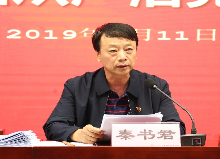 秦书记号召,全校要紧密团结在以习近平同志为核心的党中央周围,全面贯彻落实党的十九大部署,不忘初心,牢记使命,奋力谱写新时代学校事业发展的崭新篇章,以优异的成绩向建国70周年献礼。
