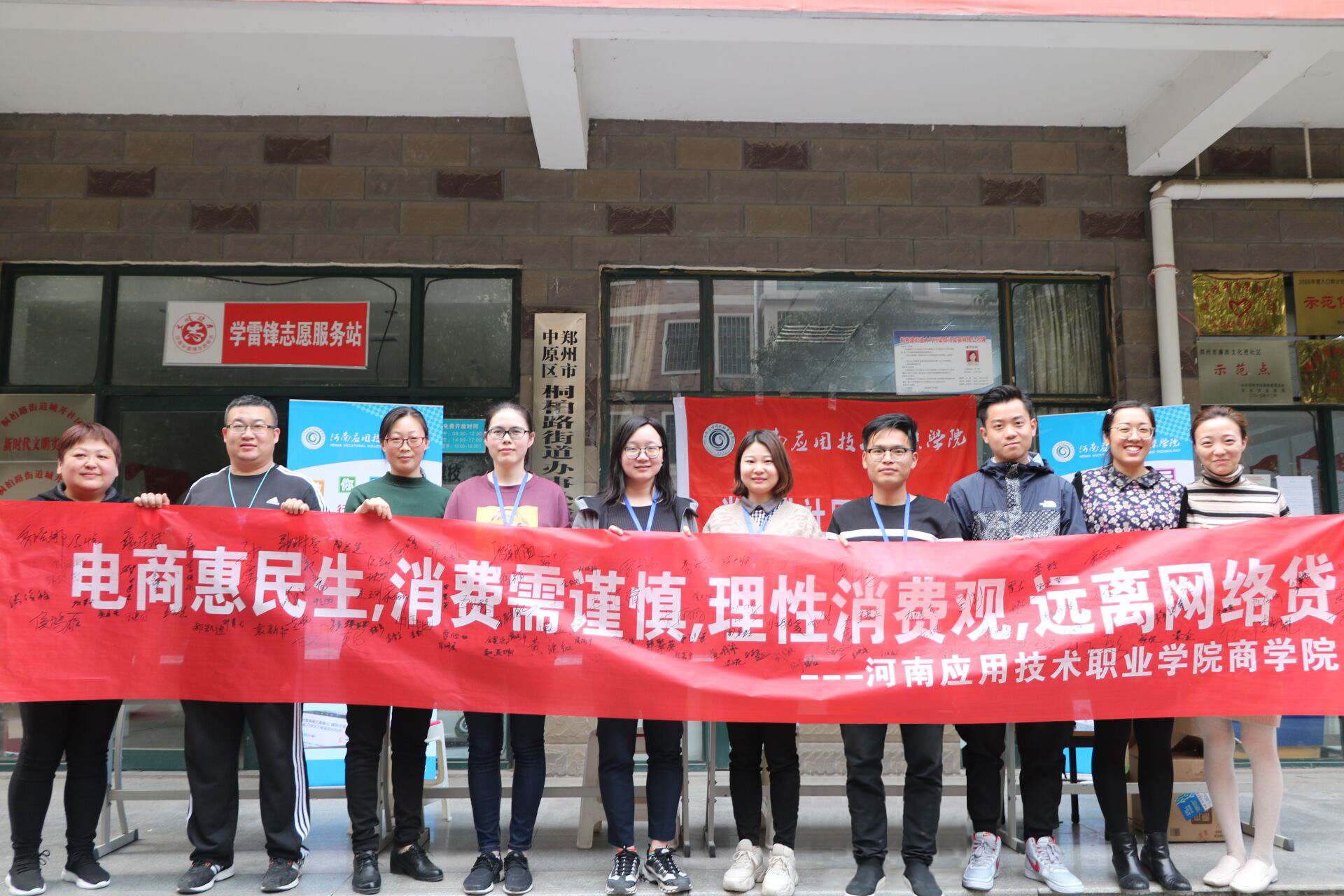 为培育和践行社会主义核心价值观,充分发挥省级文明单位示范带头作用,2019年3月20日下午,我校商学院党员志愿者来到了郑州城开社区,开展了以“电商惠民生,消费需谨慎,理性消费关,远离网络贷”为主题的党员志愿服务活动。