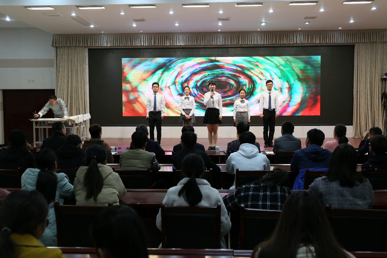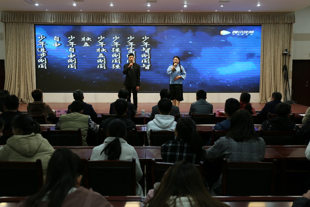 为深入学习贯彻习近平新时代中国特色社会主义思想和党的十九大精神,引导青年学子为实现青春梦、中国梦而努力奋斗。2018年12月4日下午,由党委宣传部和思想政治理论教学部主办,团委、各二级学院协办的“我与‘两个一百年’主题宣传活动”之“青春逢盛世,奋斗正当时”诵读暨才艺展示大赛在实训中心二楼会议室举行。党委书记秦书君,副校长赵玉奇莅临现场观看比赛。共有来自东西校区十二支代表队参赛。