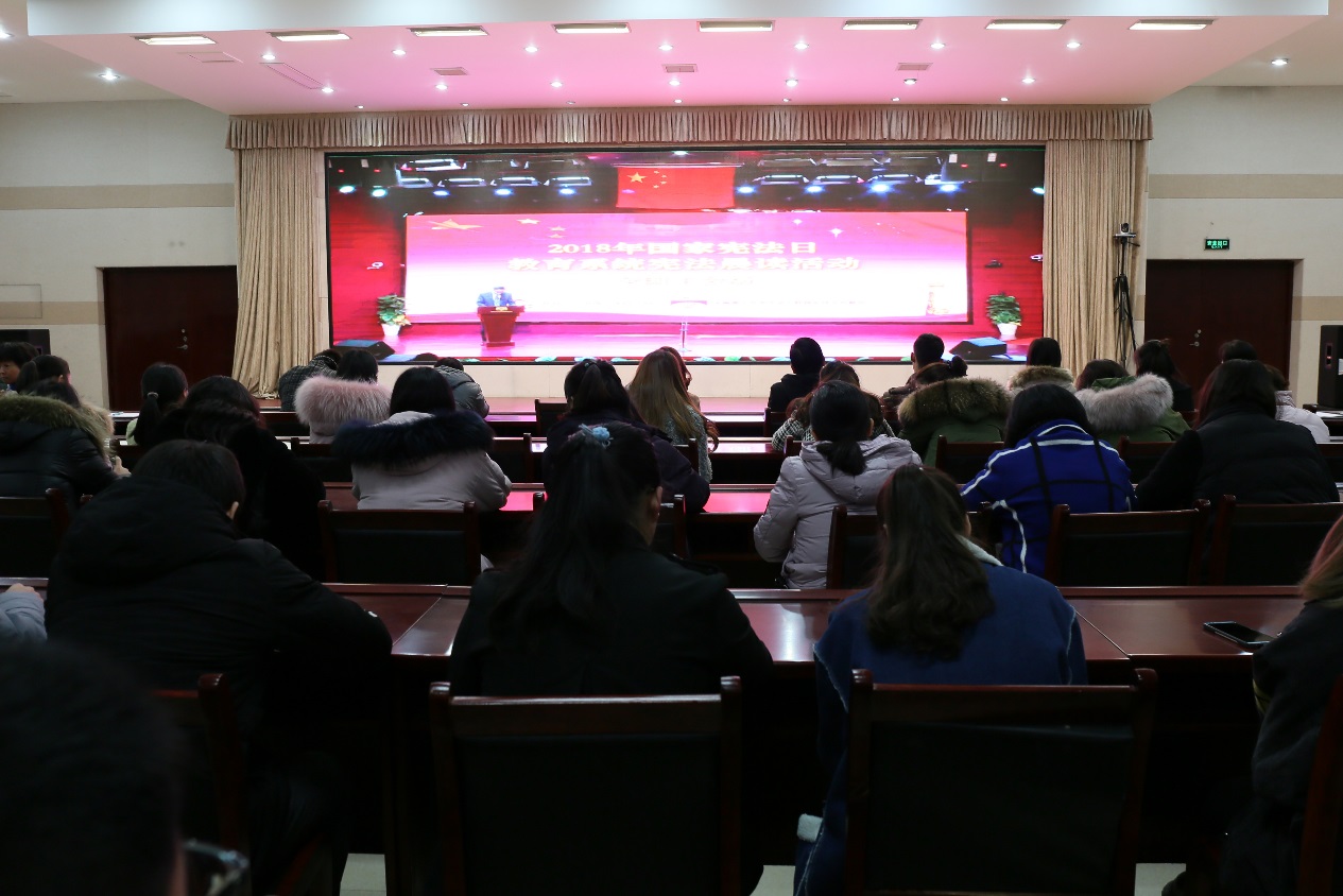 为深入贯彻落实习近平总书记提出的“坚持依法治国首先要坚持依宪治国,坚持依法执政首先要坚持依宪执政”的全面依法治国新理念新思想新战略,深入贯彻落实中央关于深入学习宣传和贯彻实施宪法的部署,弘扬宪法精神,树立宪法权威,使全体人民都成为社会主义法治的忠实崇尚者自觉遵守者坚定捍卫者,12月4日我校举办以“尊崇宪法、学习宪法、遵守宪法、维护宪法、运用宪法”为主题“国家宪法日”普法宣传教育活动。12月4日早上7点校团委组织举行了升旗仪式和宪法晨读活动,9点学生处组织全体辅导员和部分学生代表观看了河南省开展大中小学生“宪法晨读”活动仪式的网络直播,下午校党委组织全校教职工学习了宪法。同时学校通过新媒体、广播、宣传栏等多种形式进行了宪法宣传。