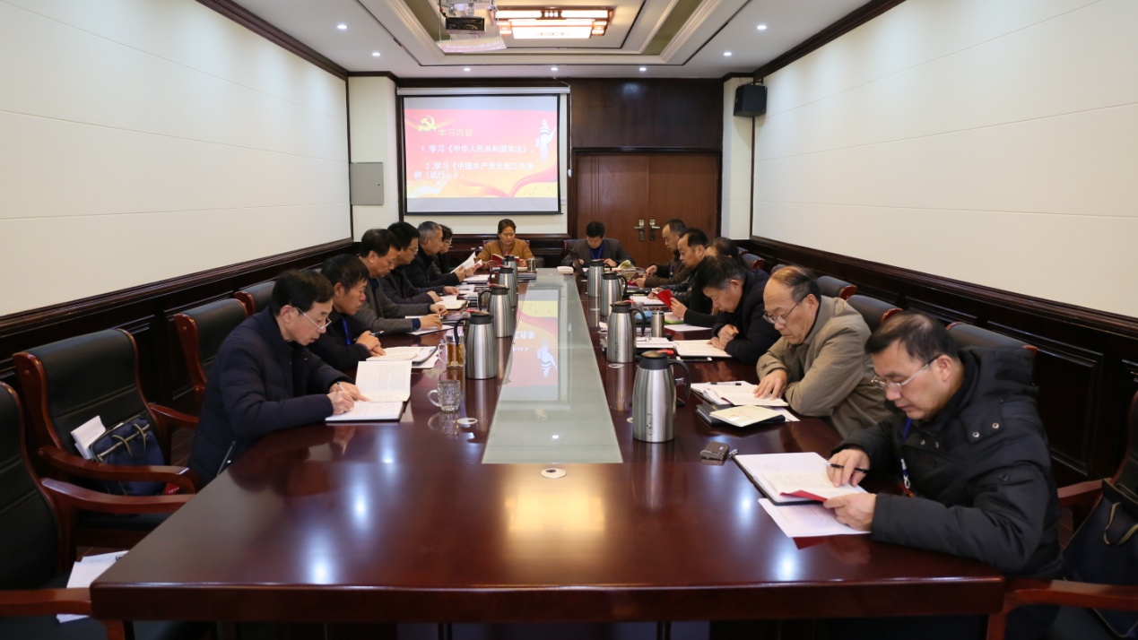 2018年12月5日下午,我校党委理论学习中心组在实训中心三楼会议室召开会议,学习了《中华人民共和国宪法》和《中国共产党支部工作条例》(试行),学校党委委员及相关部门负责人参加会议。