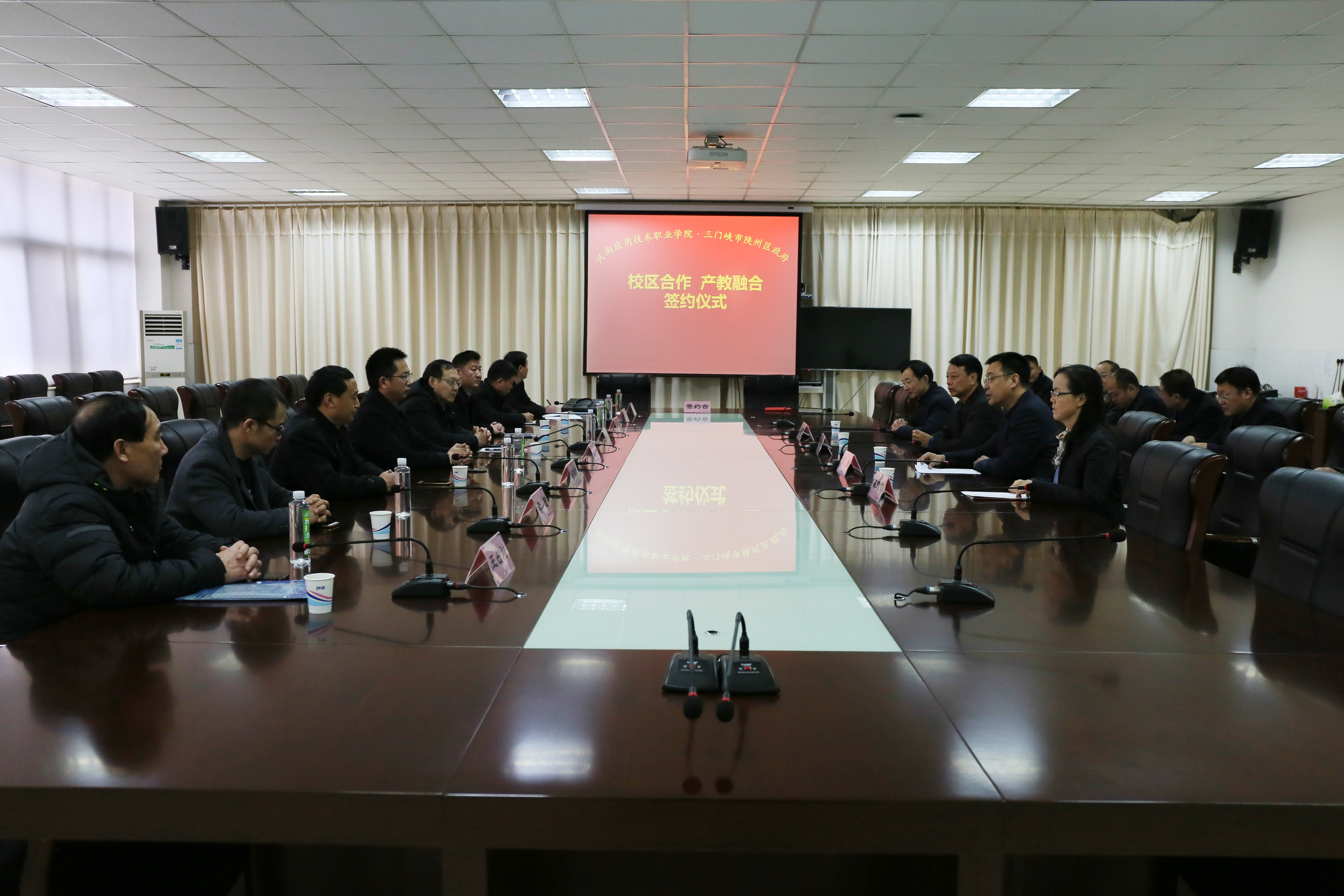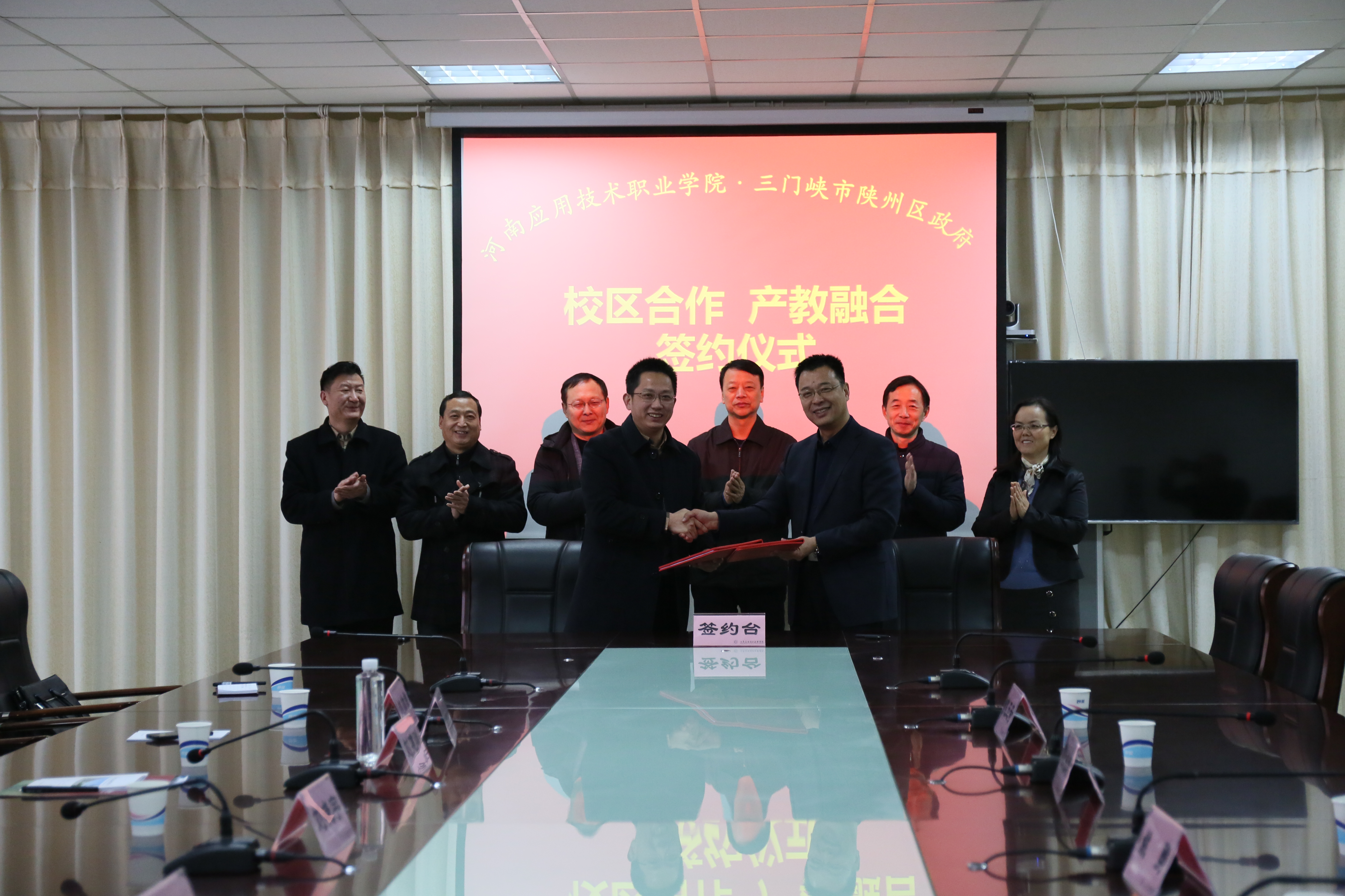 为贯彻落实国务院、教育部、河南省人民政府关于深化产教融合的实施意见相关精神,探索“行政搭建平台、校企深化合作、校校联合发展、融合促建发展”的校区合作模式。2018年12月25日上午,我校与三门峡市陕州区政府在实训中心四楼会议室举行校区合作、产教融合签约仪式。党委书记秦书君,校长姚勇,陕州区副区长刘晓宇出席签约仪式。