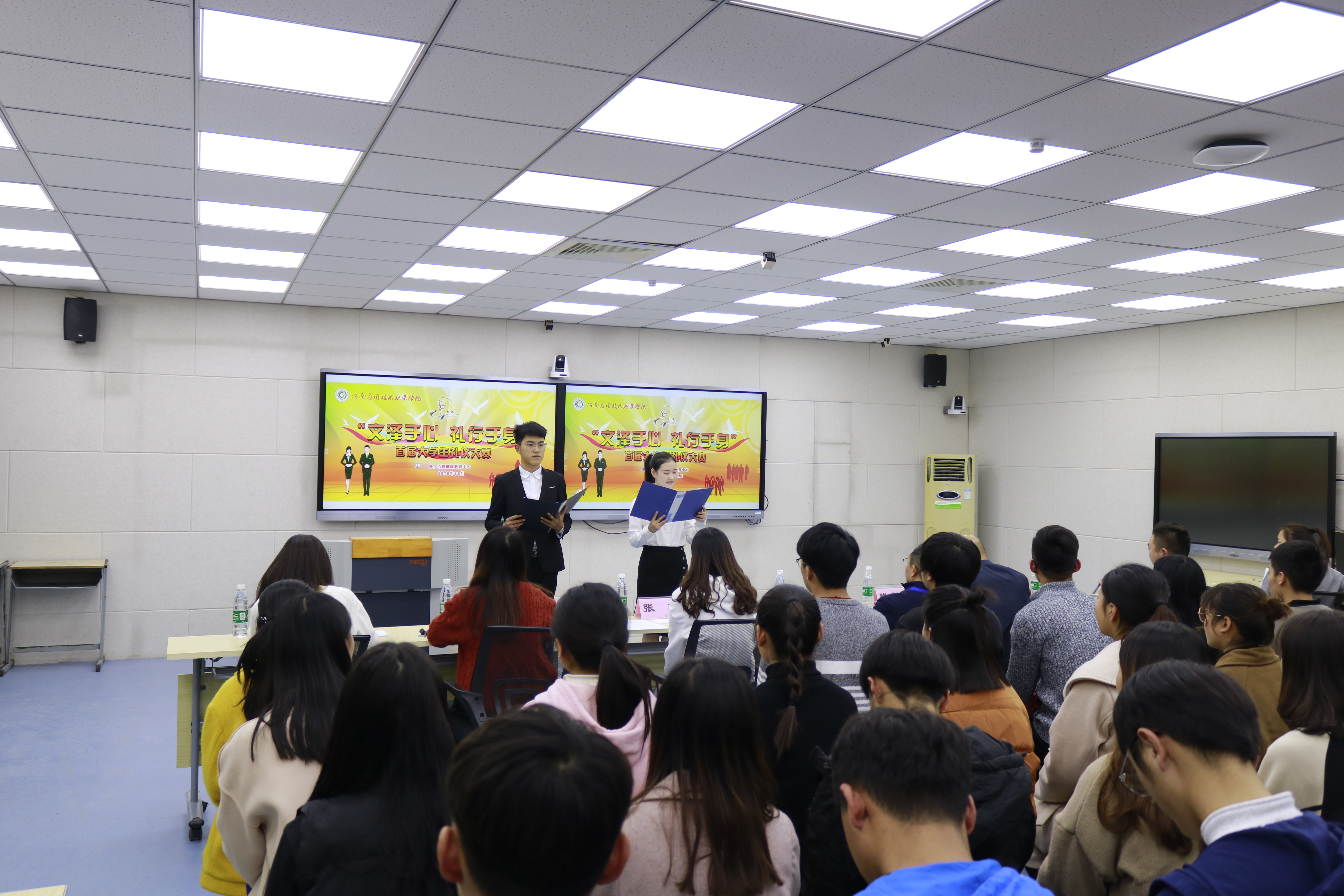为贯彻党的十九大精神,落实中共中央办公厅和国务院办公厅《关于实施中华优秀传统文化传承发展工程的意见》,彰显中华传统礼仪文化的时代价值,提高职业院校礼仪教育教学水平和人才培养质量,为参加2019年全国职业院校师生礼仪大赛选拔优秀人才,2018年11月27日下午2:00,由我校心理健康教育中心主办的2018年首届“文泽于心 礼行于身”大学生礼仪大赛在智慧教室成功举办。
