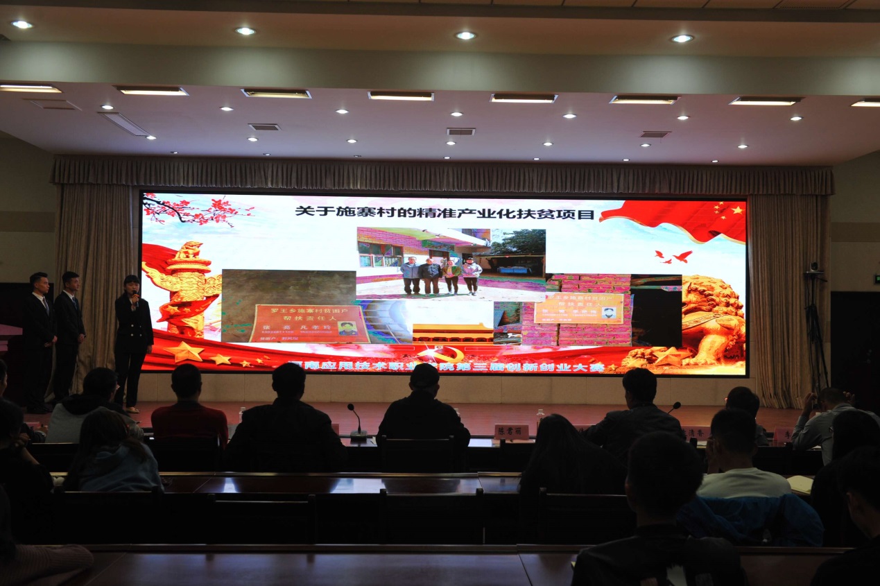 勇立时代潮头敢闯会创,扎根中国大地书写人生华章。2018年10月30日下午,由我校就业创业指导中心、团委联合举办的第三届大学生创新创业大赛在实训中心二楼会议室拉开帷幕。学校副院长陈君丽,郑州九六一集团CEO万方建、郑州九六一集团总经理助理李伟出席大赛。