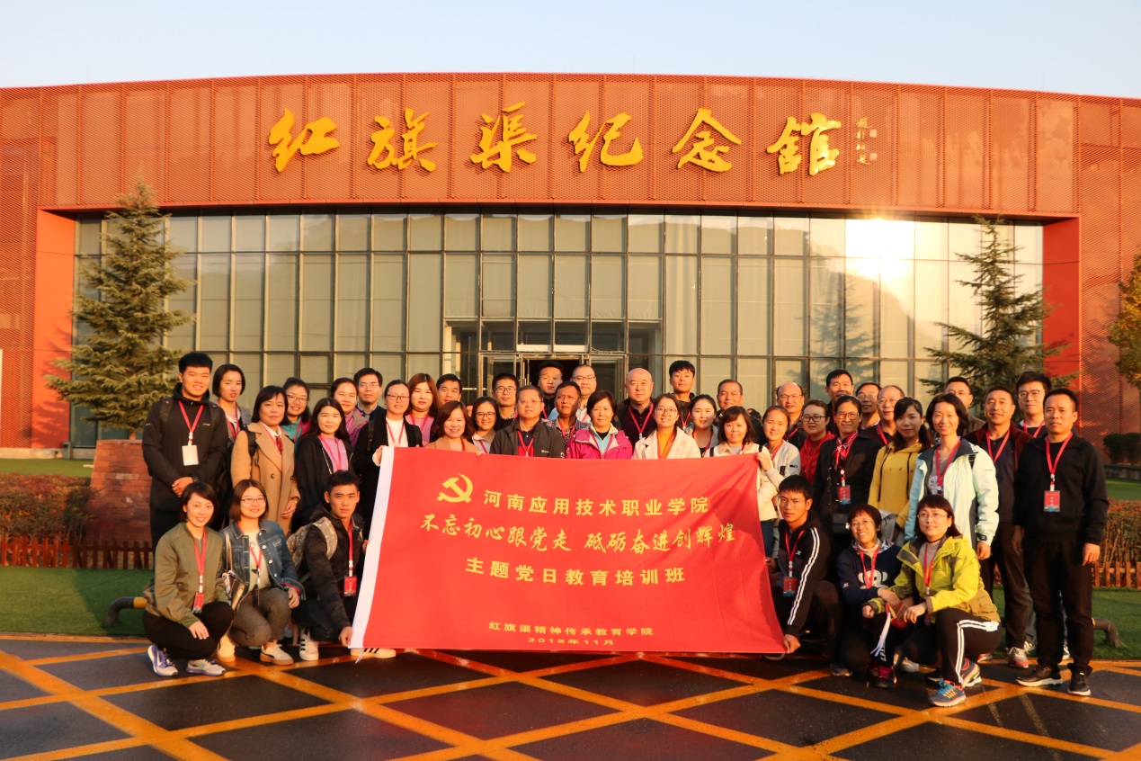 为贯彻落实党的十九大精神和省委十届六次全会精神,提升党员干部党性修养,2018年11月3日至4日,我校机关第二党总支、商贸学院党总支、建工学院党总支40余名党员干部赴河南林州红旗渠精神传承学院,开展了题为“不忘初心跟党走 砥砺奋进创辉煌”的主题党日教育活动。