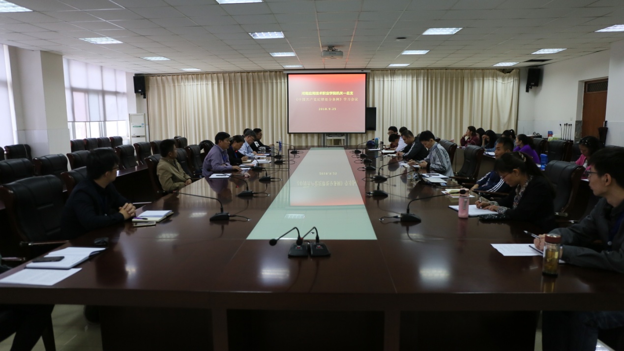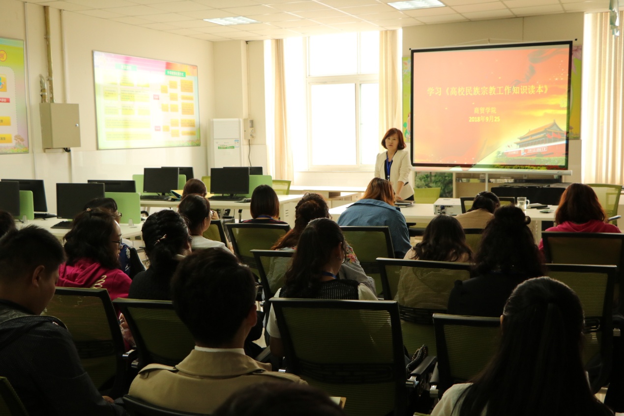 为认真贯彻落实习近平新时代中国特色社会主义思想和党的十九大精神,2018年9月25日下午,根据校党委统一安排,我校组织全体教职员工以总支为单位学习了《高校民族宗教工作知识读本》,组织全体党员学习了《中国共产党纪律处分条例》。