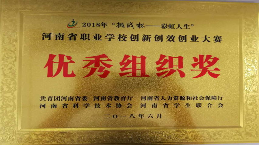 6月11日至12日,由共青团中央、教育部、人力资源和社会保障部、中国科协、全国学联主办的2018年“挑战杯—彩虹人生”河南省职业学校创新创效创业大赛决赛在郑州铁路职业技术学院举行,共有来自全省职业院校师生代表500多人参加比赛。在为期两天的决赛中,采用现场展示与问辩方式进行评审,省竞赛评委会秘书处对我省47所职业学校的268件参赛作品进行了审查,其中我校报送的4件参赛作品全部晋级国赛,是河南省高职院校中进入国赛作品最多的学校,同时我校荣获“优秀组织奖”。