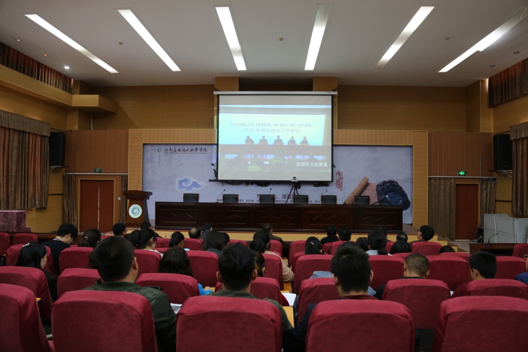 4月24日下午,我校在实训中心二楼会议室召开2018年东西校区就业创业工作视频会议,安排部署我校2018年就业创业工作,院长姚勇,副院长赵玉奇、陈君丽、王建新及相关部门负责人、全体专兼职辅导员参加会议。会议由党委副书记蒋清民主持。