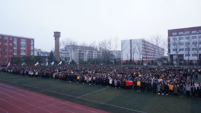 7时整,国旗班旗手们迎着朝阳,以整齐的步伐护卫着五星红旗走向升旗台。伴随着雄壮的《义勇军进行曲》,师生集体高唱中华人民共和国国歌。