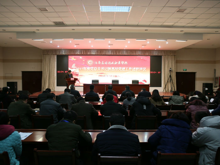 2018年1月9日下午,我校在实训中心二楼会议室召开了2017年度党总支书记抓基层党建工作述职会议,党委书记秦书君,党委副书记、院长姚勇及全体党务工作者、教师代表参加会议。会议由党委副书记蒋清民主持。