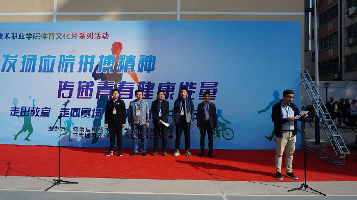 为推动我校体育运动持续健康发展,创建文明和谐校园文化氛围。2017年11月7日下午,由体育教学部、团委联合举办的第一届体育文化月活动启动仪式在室外篮球场隆重举行,党委宣传部、教务处、学生处等相关部门工作人员参加启动仪式。团委副书记娄焕主持开幕式,教务处副处长王勇致开幕辞。