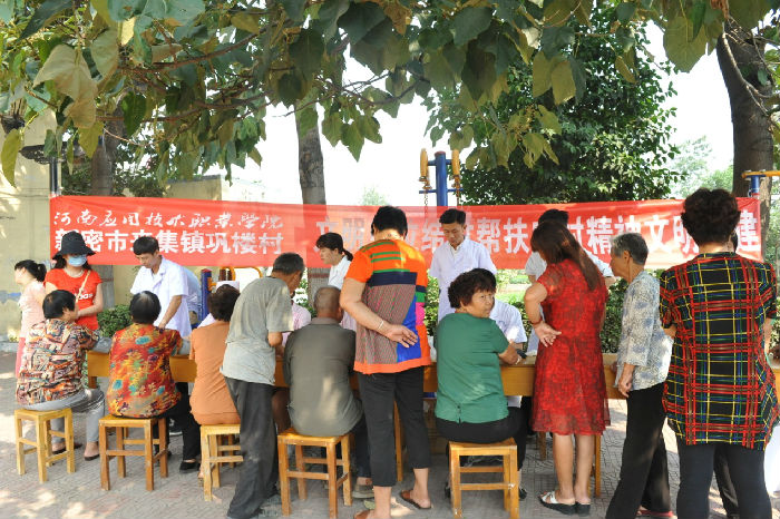 为充分发挥省级文明单位先锋模范作用,丰富农村精神文化生活,在一年一度的中秋节即将来临之际,2017年9月21日上午,由我校精神文明建设办公室、机关一党总支、护理学院党总支组成的党员志愿服务队一行20人来到了新密市来集镇巩楼村,开展了一场别开生面的趣味运动与免费义诊活动。