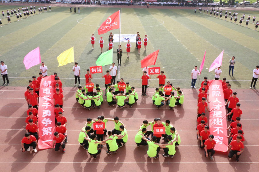 “精彩无限、洋溢青春”,由千名学生组成的广播操、太极拳、健身操表演依次上演,运动健儿飞扬的舞姿与默契的配合跳出了学子的朝气与活力,今日应院奔跑不息,拼搏精神点亮校园。