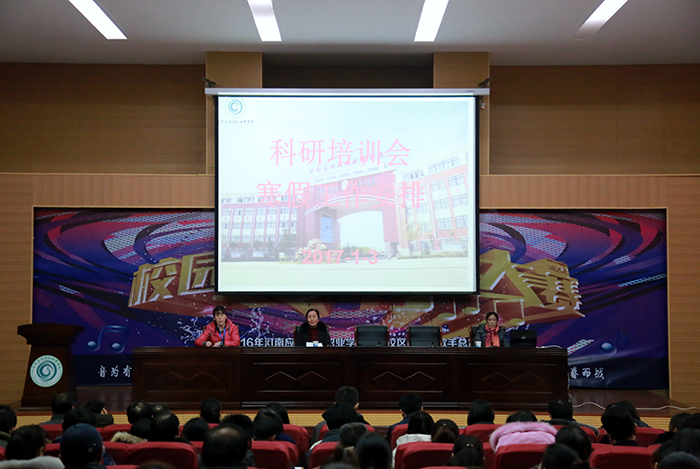 为进一步提高东校区全体专业技术人员的科研水平,提升教师科研素质,2017年1月3日下午我校应用技术研究中心副主任柴凤兰教授对东校区160名教师进行了科研工作能力提升培训,蔡娜副院长亲临指导。
