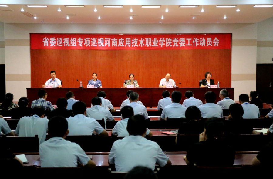 按照省委统一部署,省委巡视工作领导小组授权教育厅党组组成巡视组进驻我院开展为期一个月的专项巡视。8月31日上午,省委巡视组专项巡视河南应用技术职业学院党委工作动员会在实训中心二楼会议室举行。省委巡视组组长李莉华出席会议并作讲话。学院党委书记郭改英代表领导班子作表态发言。巡视组第三工作组全体成员、教育厅巡视工作办公室相关人员出席大会。我院领导班子成员、中层领导干部及相关部门工作人员参加了动员大会。院长姚勇主持会议。