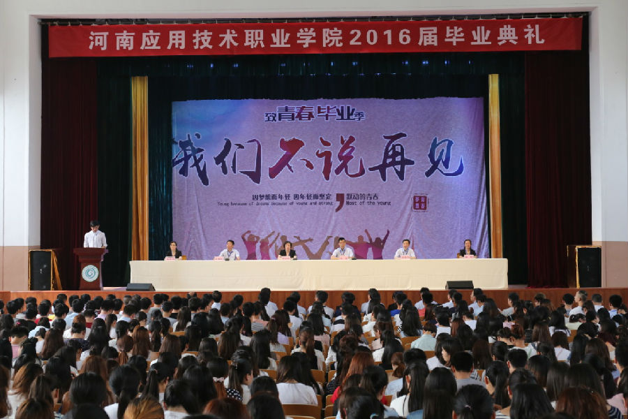 我们今天东风桃李,用青春完成作业;我们明天巨木成林,让梦想改变世界。2016年6月8日上午,河南应院技术职业学院2016届毕业生毕业典礼在大礼堂隆重举行,党委书记郭改英、院长姚勇及领导班子成员出席毕业典礼。党委副书记蒋清民主持典礼。