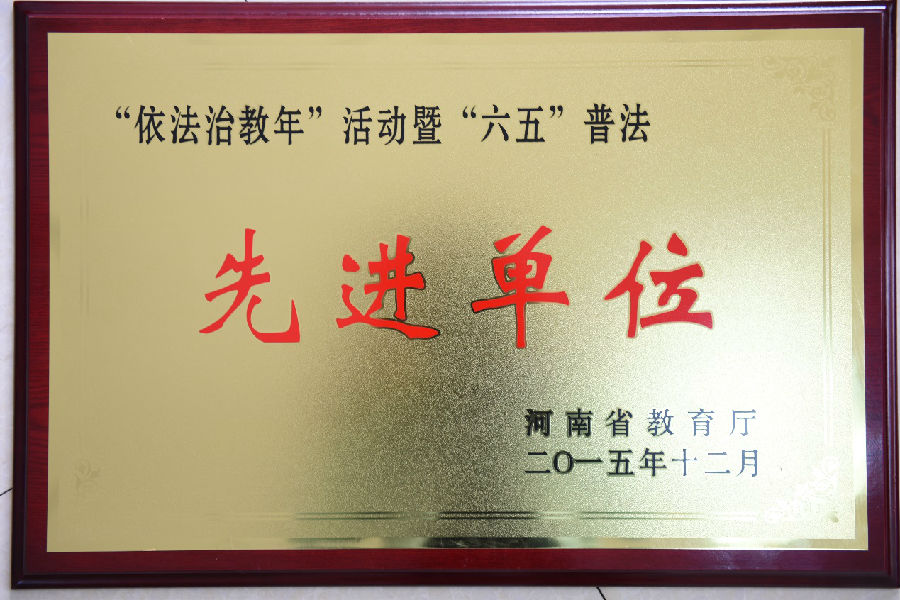 根据河南省教育厅《关于表彰“依法治教年”活动暨“六五”普法先进单位、先进个人的决定》(教政法〔2016〕56号),我院被评为河南省教育系统“依法治教年”活动暨“六五”普法先进单位。这是我院继“依法治校示范校”荣誉称号、学院章程核准通过后,在全面推进依法治校进程中又一标志性荣誉。