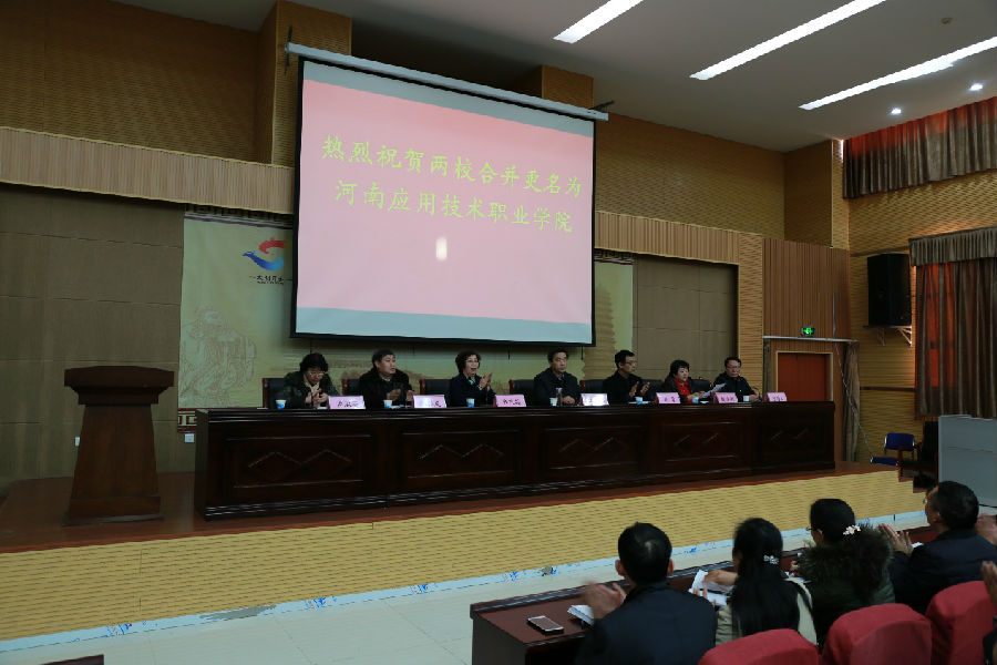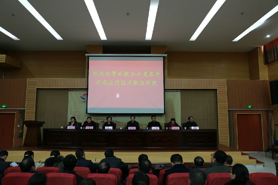 昨日下午,河南化工职业学院与河南省医药学校合并工作会议在河南省医药学校举行。会议由省教育厅人事处副处长刘根成主持,省教育厅法规处处长解秋彩宣读河南省人民政府《关于河南化工职业学院和河南省医药学校合并更名为河南应用技术职业学院的批复》文件。