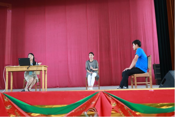 白亚丽教授以“敞开心扉,阳光生活”为题,从关注心理健康的重要性、大学生心理健康概述、大学生常见的心理问题和学会正确的心理调适方法等四个方面阐述了当代大学生关注心理健康的重要性,并通过列举现实案例,现场互动等方式对大学生常见的心理问题作了深入浅出的讲解,现场精彩纷呈,气氛热烈,引来了同学们的阵阵掌声。