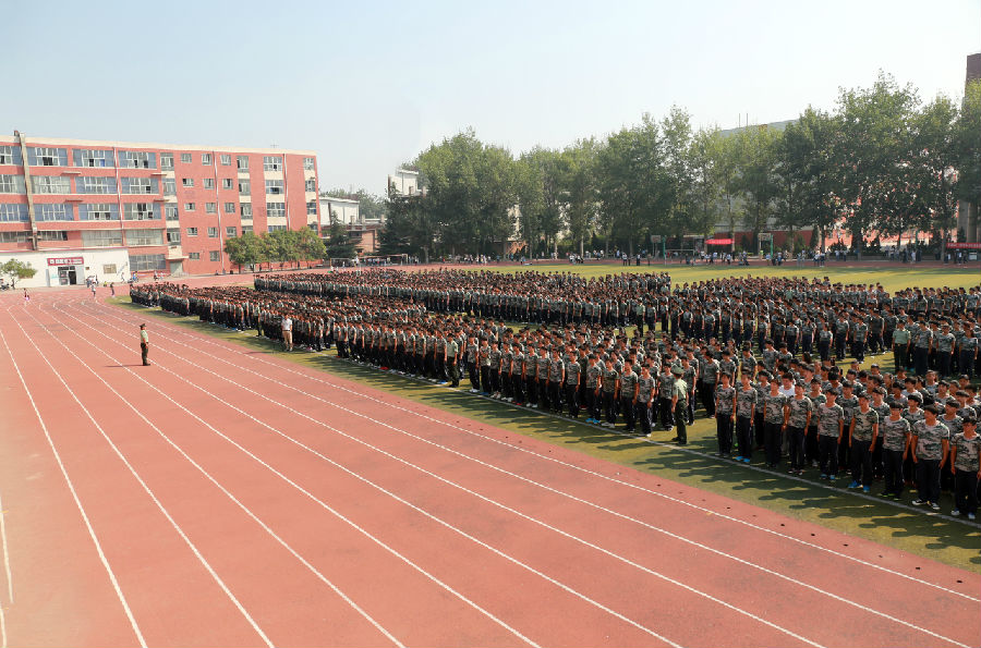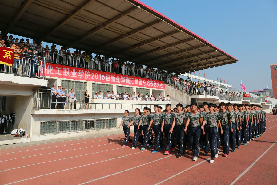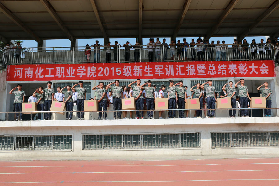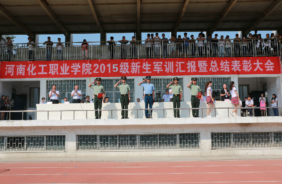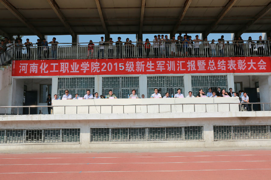 9月15日上午8:30分,我院2015级军训新生在田径场上整齐列队、严阵以待,隆重召开2015级新生军训汇报暨表彰大会。院党委书记郭改英、院长姚勇、中国人民解放军信息工程大学地理空间信息学院士官学员管理大队队长洪刚出席本次大会。