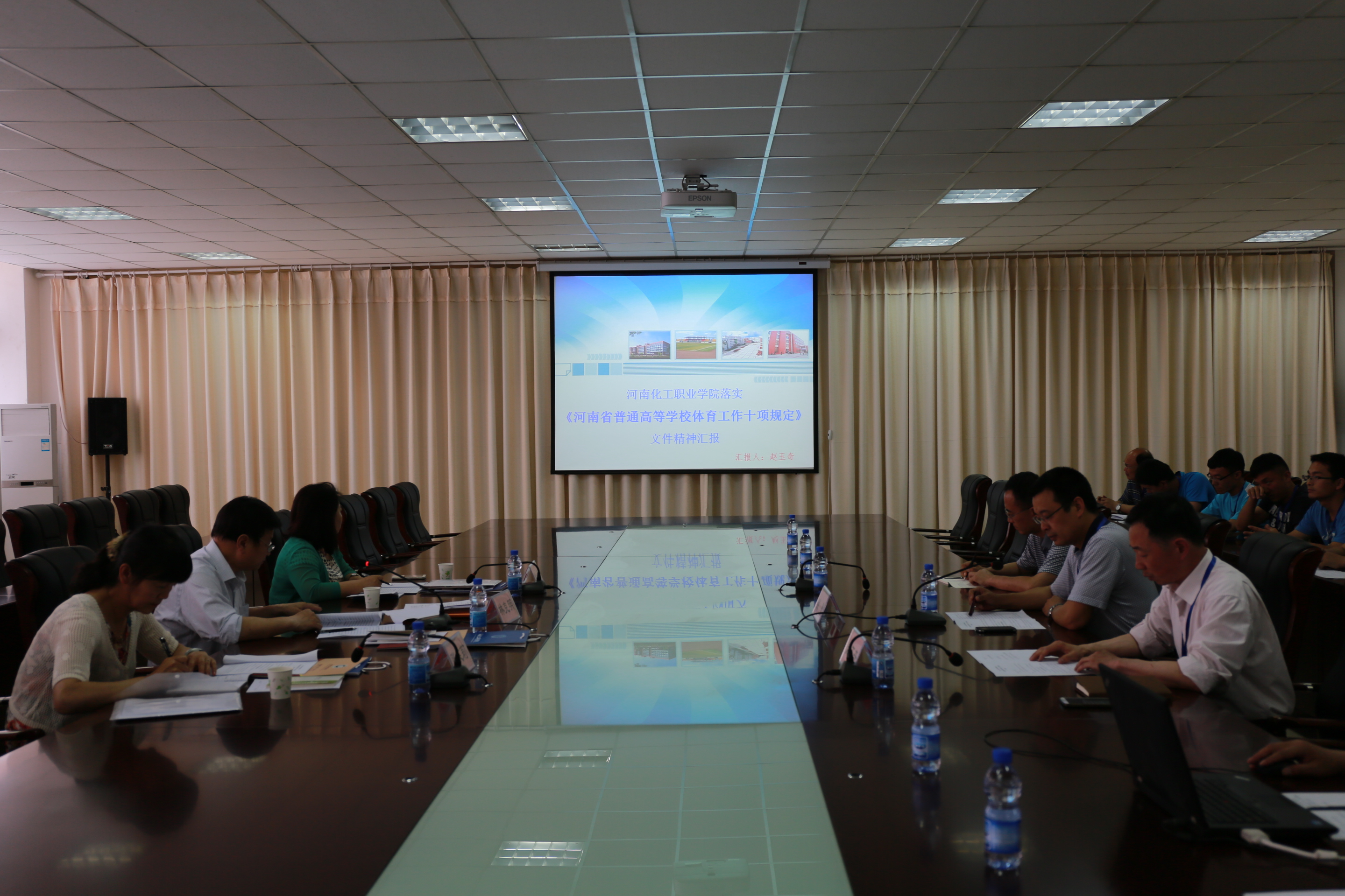 2015年5月19日,以郑州大学体育系主任林克明教授为组长的河南省教育厅体育工作专家组一行3人莅临我院对《河南省高校体育工作十项规定》落实情况进行专项检查。汇报会在实训中心四楼会议室进行,副院长赵玉奇主持汇报会,院长姚勇代表学院致欢迎词,相关职能部门负责人出席会议。