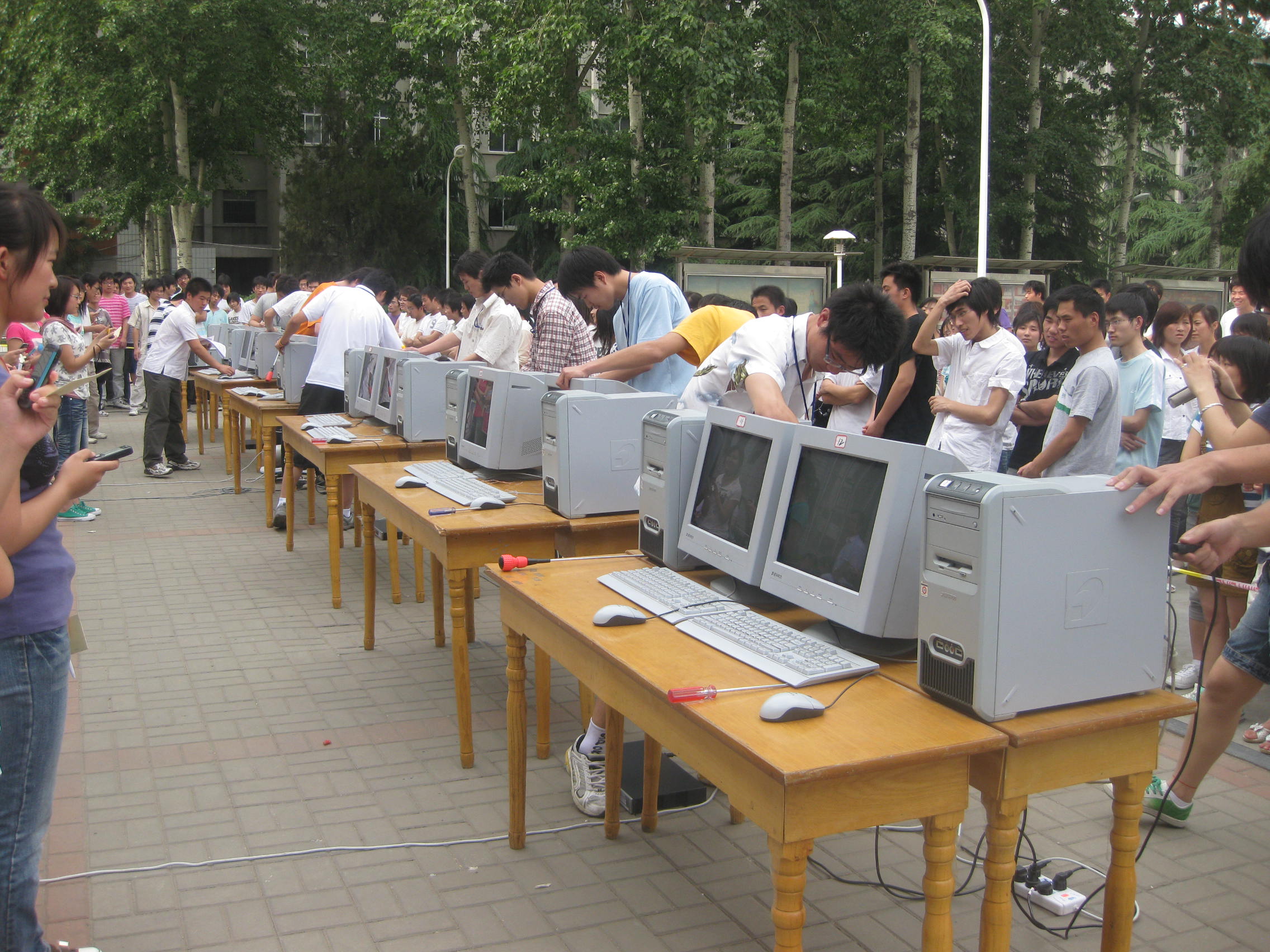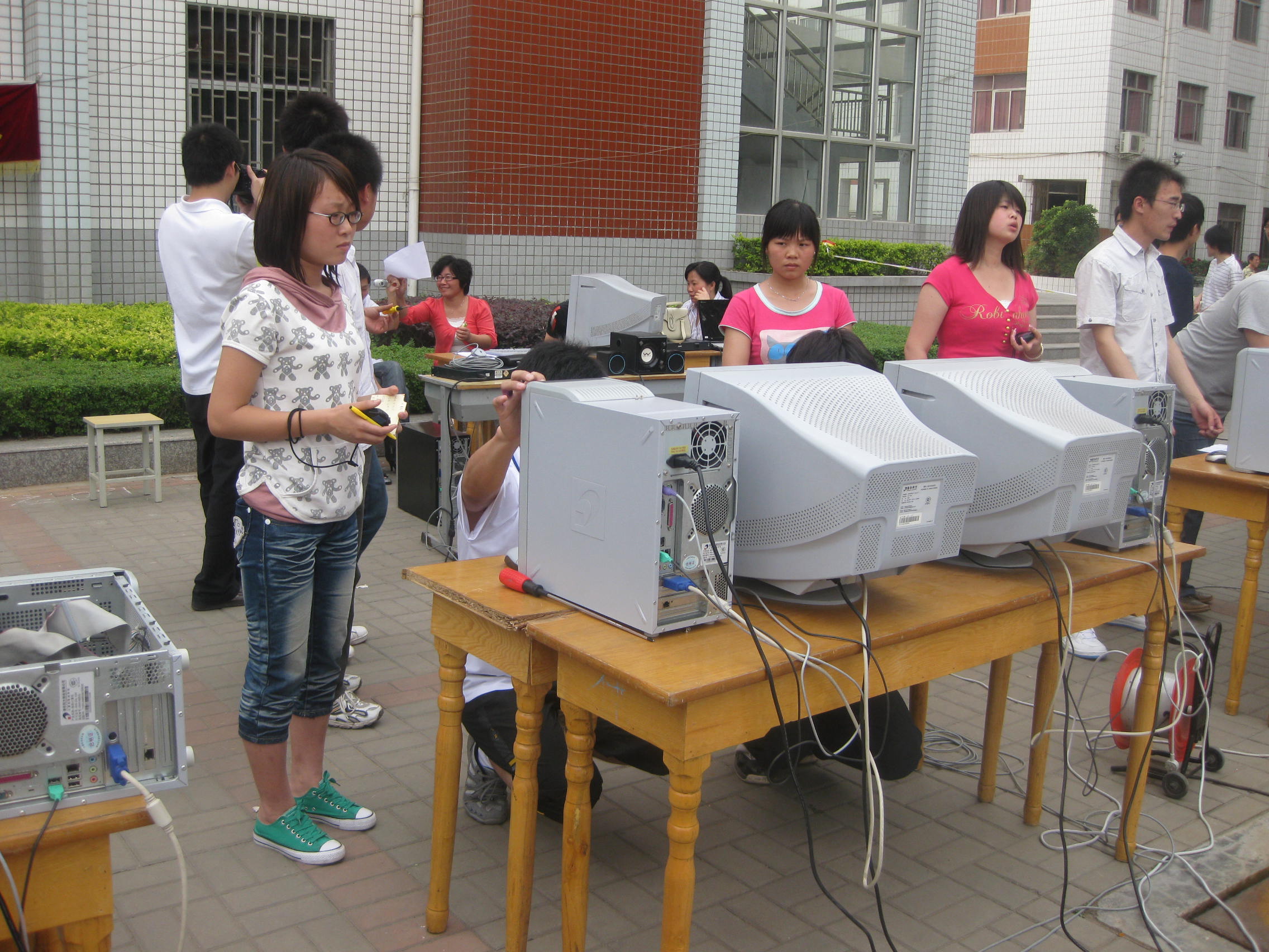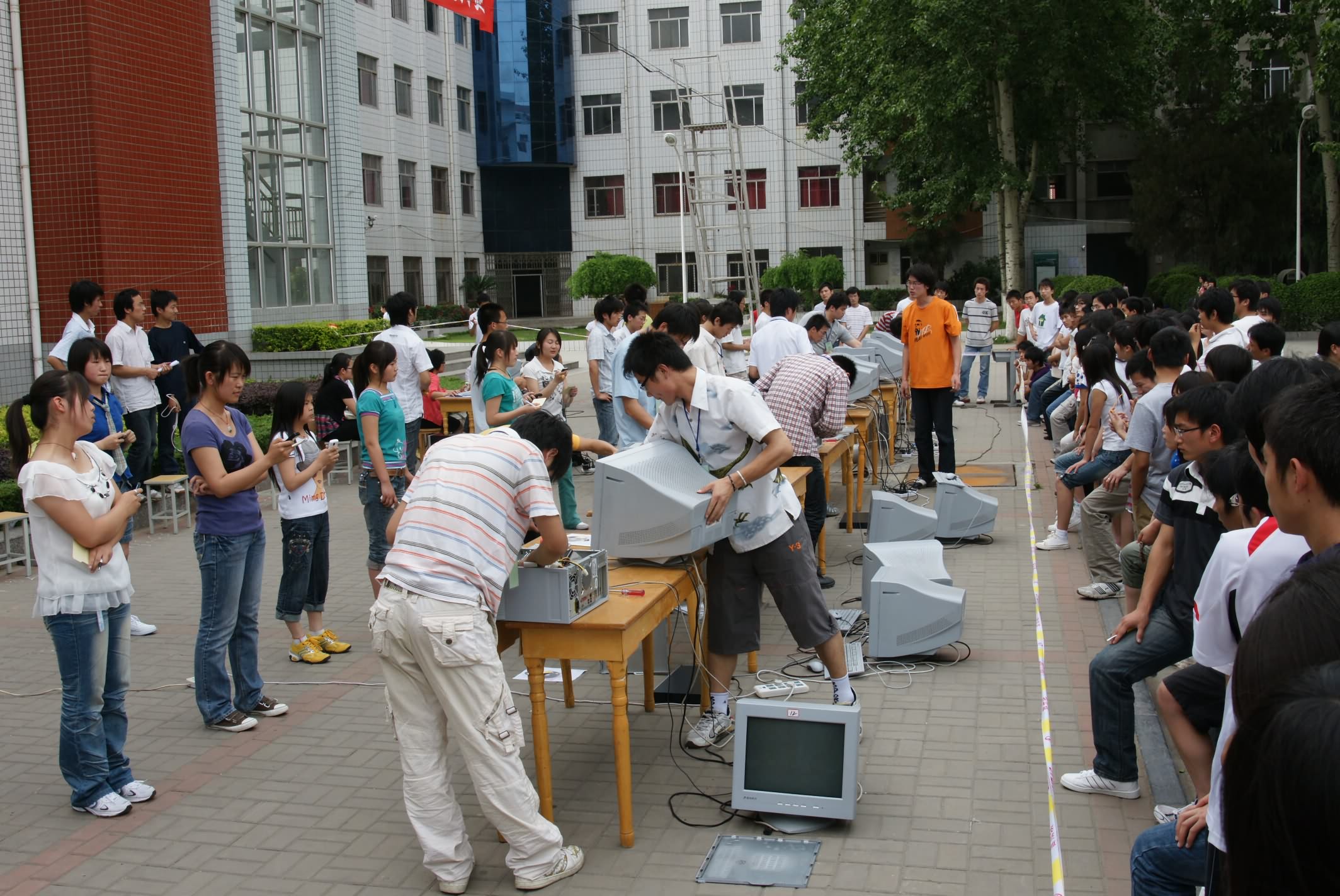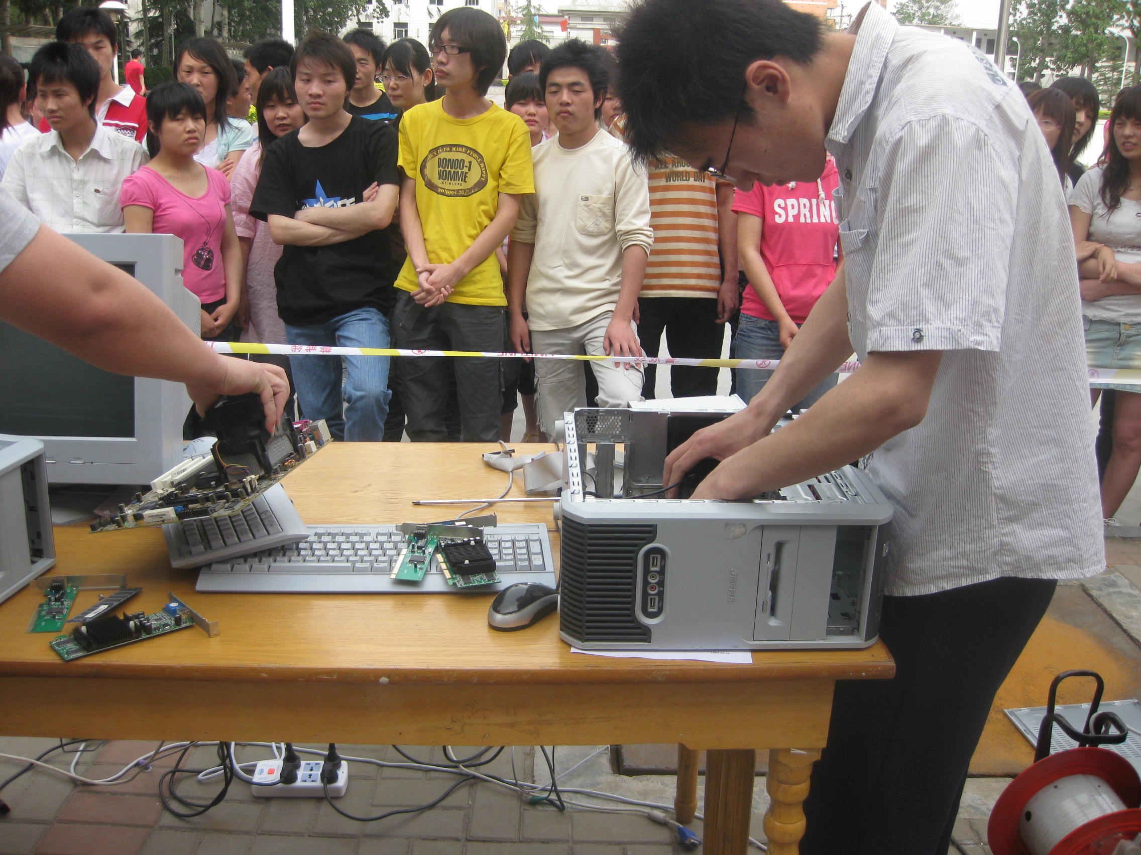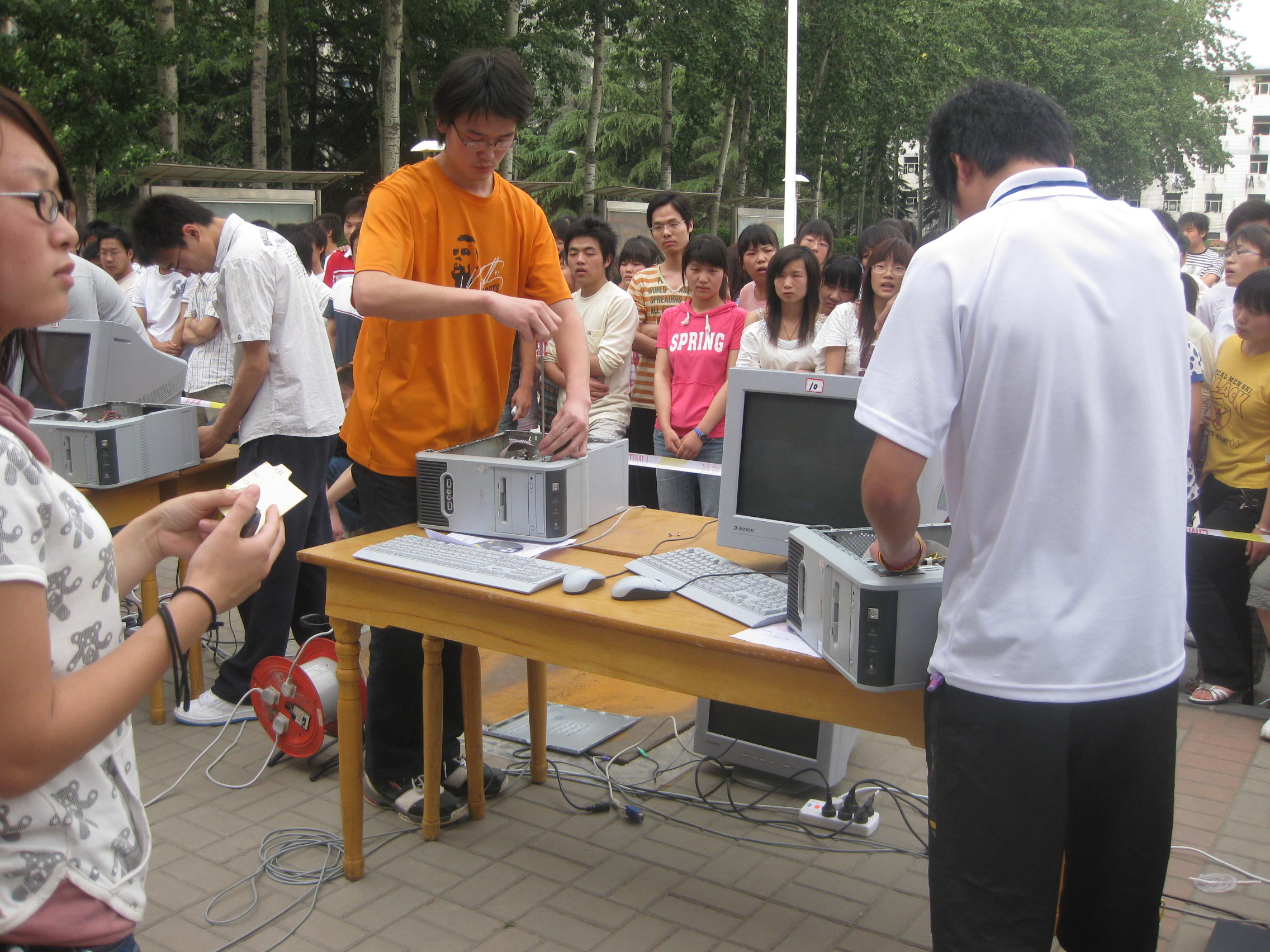 5月19日下午信息工程系第一届计算机拆装大赛决赛在学院广场举行,系主任黄振中老师、系党总支书记刘振民老师及信息工程系部分老师跟踪了全场的比赛。本次大赛参赛对象是信息工程系2007级、2008级所有学生,参赛程序通过报名、选拔、预赛,最终选出前12名选手参加决赛。大赛的主要内容是计算机硬件的拆与装及计算机操作系统、软件的安装,这类比赛体现了信息工程系 “理论与实践相结合,积累实际操作经验” 的宗旨。
