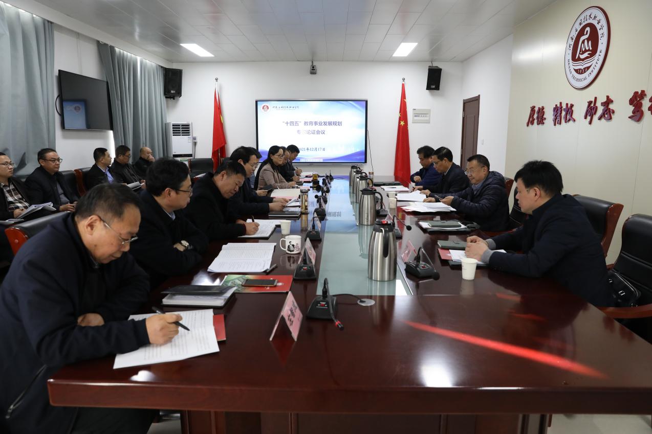 2021年12月17日,我校召开学校“十四五”教育事业发展规划专家论证会议。专家组由郑州大学副校长屈凌波、河南省教育厅发展规划处副处长刘振海、郑州铁路职业技术学院党委书记许琰、河南省石油化工协会副秘书长刘立新、河南职业技术学院发展规划处处长刘岩5名专家组成,对学校“十四五”发展规划进行深入论证和科学指导。学校相关领导及职能部门负责人参加会议。会议由校长范晓伟主持。