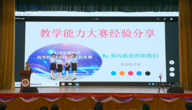 会上,教务处处长黄振中展示了本学期我校在教师教学能力比赛、学生技能大赛、教学改革研究项目建设、教材建设等多个方面取得的标志性成果。