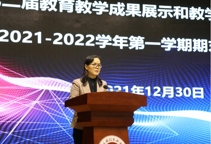 陈君丽全面总结了本学期我校教学工作取得的骄人成绩,部署了寒假和下学期重点教学工作,并对各教学部门和全体教师提出了三点希望:一是提高政治站位,做工作生活的守护者;二是提能力强作风,做事业发展的担当者;三是积极开拓创新,做提质培优的先行者。