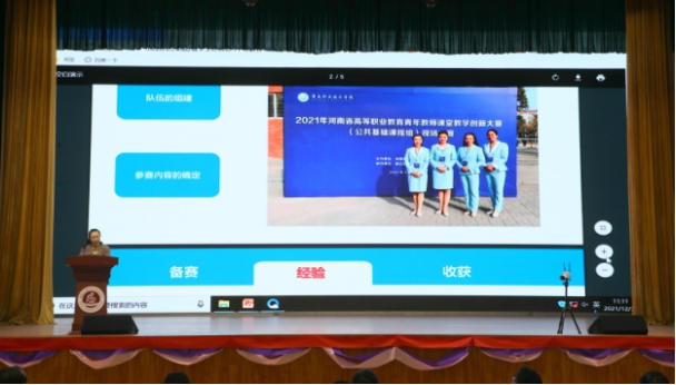 张慧俐和关杰两位老师讲述了带领学生参加全国职业院校技能大赛的心路历程,侯鸿雁老师分享了参加国家级行业技能大赛的宝贵经验,李改玲老师介绍了参加省级教师教学能力比赛的心得体会,赵容、程珍珍两位老师畅谈了参加省级青年教师课堂教学创新大赛的感悟体验。