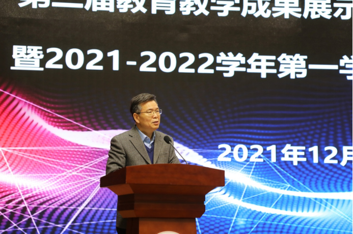 范晓伟代表学校向在2021年教育教学成果建设中做出突出贡献的教师们表示热烈的祝贺和衷心的感谢。他指出,2021年是我校教学工作的丰收之年,在今后的工作中,要注意在三个方面持续发力:一是立足本职,争做优秀职教人,要在工作中贯彻行业、产业、企业、职业、专业“五位一体”的理念,最终落实到增强学生就业竞争力的目标上;二是全体教师要做好“211”工程,即讲好2门课、密切联系1家企业,熟练掌握1项专业技能,努力提高自身教学能力;三是突出教学工作中心地位,充实一线教学力量,在办学实践中着力凝练办学特色,打造育人品牌。