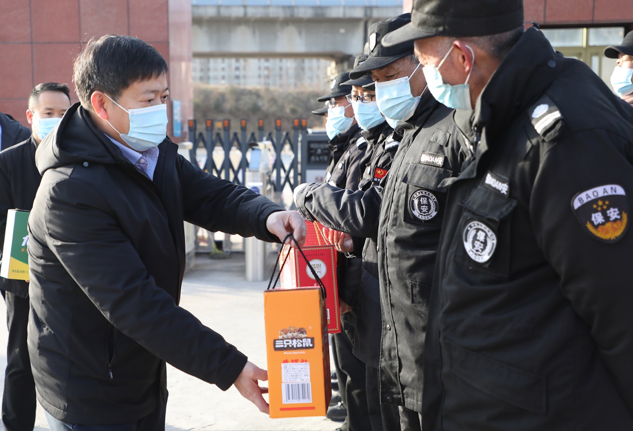 在壬寅年春节即将到来之际,2022年1月31日,党委委员、副校长刘振民,党委委员、统战部部长刘效平分别带队亲切慰问春节期间坚守岗位留校工作的值班人员、安全保卫和后勤服务人员,为大家送上节日问候和新春祝福。
