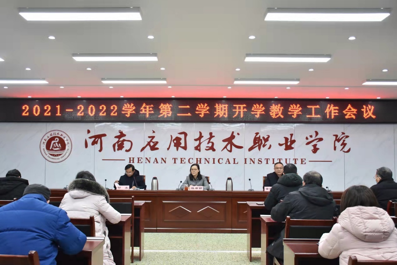 2022年2月16日下午,我校召开2021-2022学年第二学期开学教学工作会议。主管教学副校长陈君丽出席会议并发表讲话,相关职能部门负责人、各教学部门负责人及教研室主任参加会议。会议由教务处副处长付永主持。