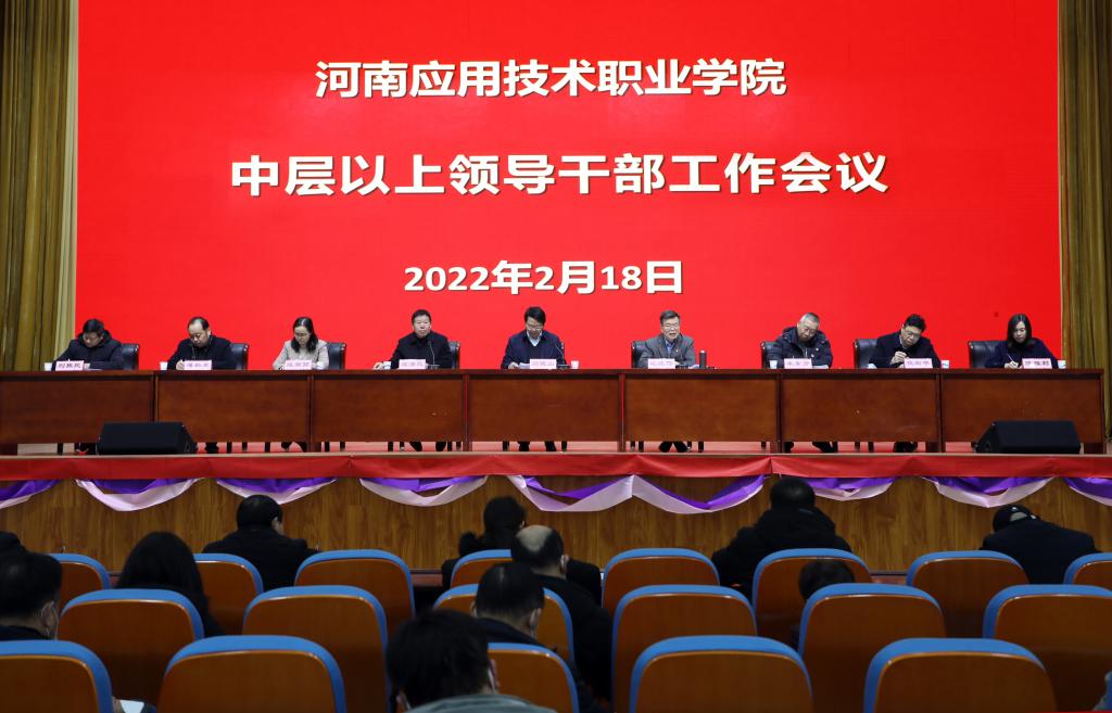 党委书记闫俊山指出,2022年是党的二十大召开之年,是学校“双高工程”建设的关键时期,新校区也将于秋季学期正式启用。总体来看,今年学校工作任务重、责任大、压力大,我们要全面贯彻落实党的教育方针,落实立德树人根本任务,以“双高工程”建设为抓手,全面推进学校事业高质量发展,在服务河南“十大战略”、实现“两个确保”中奋勇争先、更加出彩,以实际行动和优异成绩迎接党的二十大胜利召开。