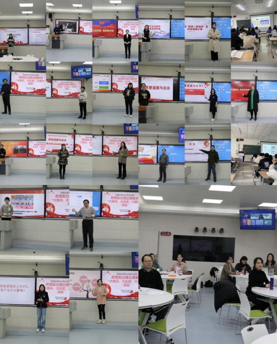 为深入学习贯彻习近平总书记在学校思想政治理论课教师座谈会上的重要讲话精神和“大思政课”重要指示精神,根据中共河南省委教育工委、中共河南省委宣传部《关于开展2022年度全省学校思想政治理论课教学技能“大练兵、大比武、大展示、大提升活动的通知》(豫教工委〔2022〕4号)要求,在校领导的大力支持和有力领导下,思政部全员参与,掀起思政课教师“大练兵”高潮。