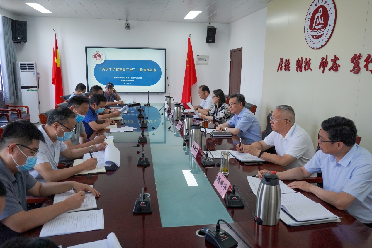 2022年6月16日,我校在办公楼315会议室召开“高水平学校建设工程”项目建设工作推进会议。校长范晓伟,党委副书记朱东方,副校长陈君丽、魏新华、薄新党出席会议,“高水平学校建设工程”各项目组牵头部门、财务处、发展与质量管理处负责人参加会议。会议由魏新华主持。