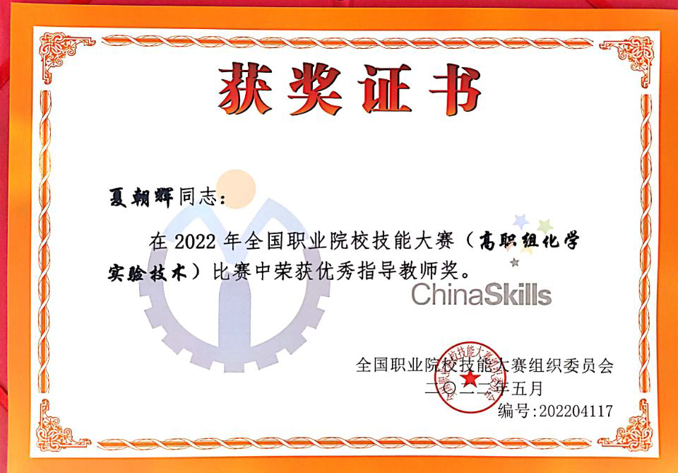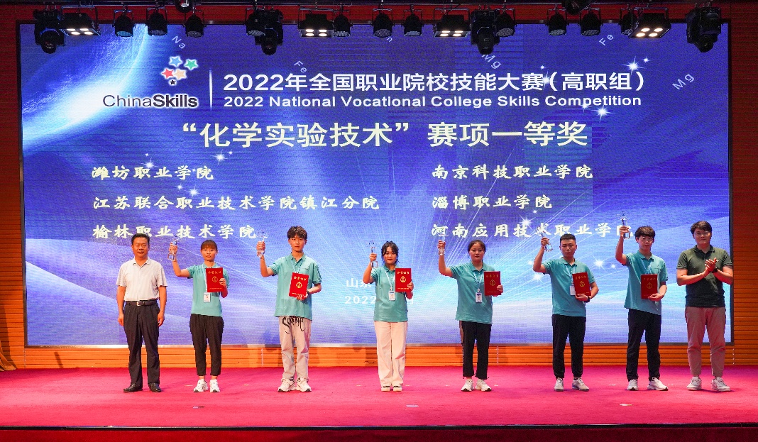 8月17日,2022年全国职业院校技能大赛高职组“化学实验技术”赛项在潍坊职业学院落下帷幕。我校化学工程学院食品营养与检测专业1901班学生李瑞凯荣获一等奖,夏朝晖获优秀指导教师。这是我校继2022年全国职业院校技能大赛(高职组)中药传统技能赛项后,再次在国赛赛场上斩获一等奖。