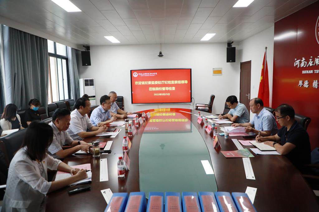 2022年8月25日下午,驻省教育厅纪检监察组副组长侯现福、教育厅组干处干部苑永华和驻厅纪检监察组干部崔俊勇一行3人,到我校督导检查2022年上半年落实全面从严治党主体责任情况。学校党委书记闫俊山、校长范晓伟、党委副书记蒋清民、党委副书记朱东方、纪委书记陈雅莉及相关部门负责人参加汇报会,汇报会由校长范晓伟主持。