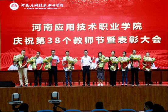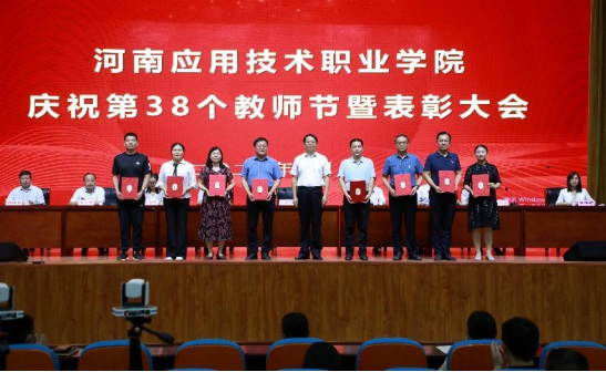 大会在雄壮的国歌声中拉开帷幕。副校长陈君丽带领参会人员重温了教师誓词。党委副书记蒋清民宣读了《关于对2021-2022学年获得厅级以上荣誉的优秀团队和先进个人进行通报表彰的决定》;副校长魏新华宣读了《河南应用技术职业学院关于表彰第二批光荣从教三十年及以上教师的决定》和《河南应用技术职业学院关于表彰2021年度先进集体和个人的决定》。