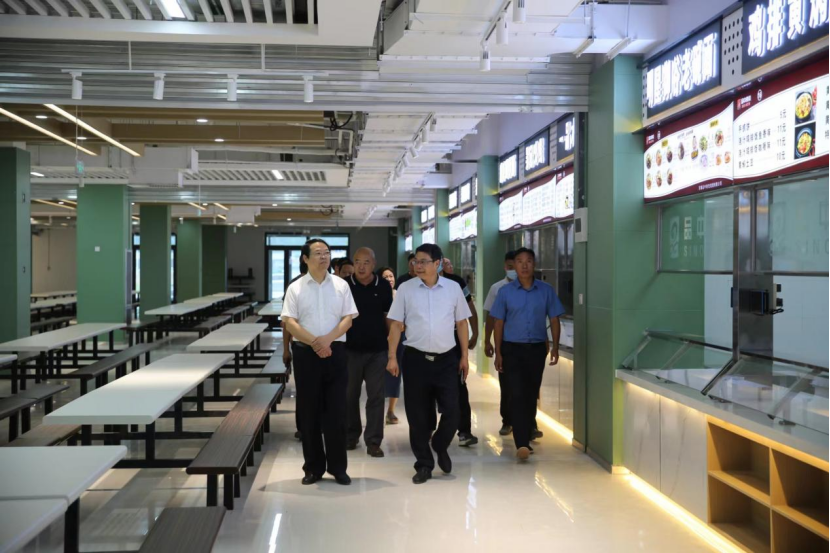 闫俊山一行先后视察了学生食堂、学生生活服务中心、学生公寓、教学楼、行政办公区以及校南大门的道路铺设情况。