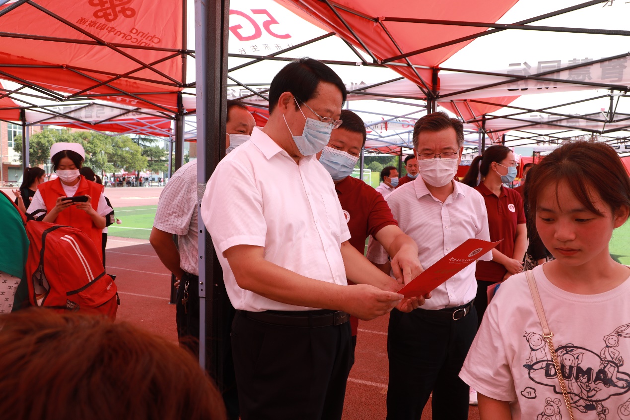 党委书记闫俊山、校长范晓伟一行来到报到现场,听取了各院部的迎新工作汇报并实地察看疫情防控及报到情况。他们对相关部门、二级院(部)周到细致的服务工作表示肯定,同时要求相关部门、二级院(部)要始终坚持以生为本,及时解决学生问题,让新生感受到学校的温暖。随后,他们与学生亲切交流,嘱咐学生要做好规划,珍惜时光,尽快适应大学生活。