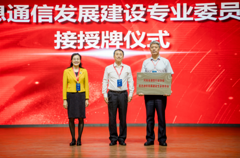 仪式上,方强和张五萍共同为河南省通信行业协会信息通信发展建设专业委员会授牌。