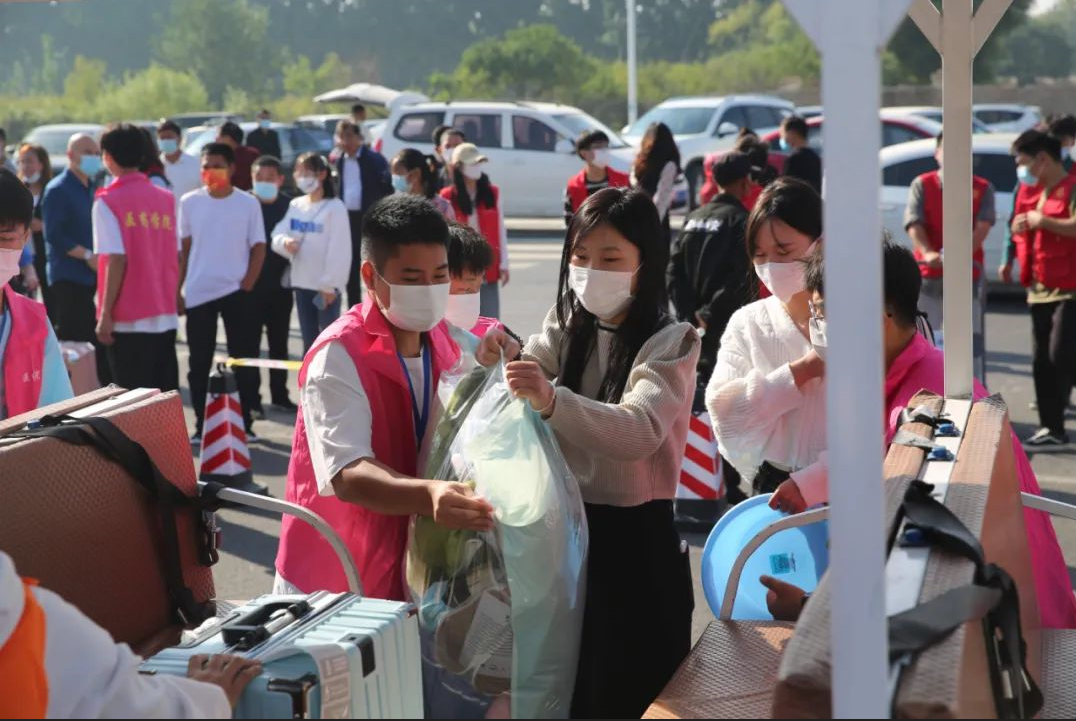 入学当天,校门外欢迎拱门气势宏大,校园内彩球飘扬、彩旗招展,相关职能部门、二级院(部)特色展板、标语鲜艳醒目,一处处精心的布置让秋意渐浓的新校区处处传递着对学生热烈的欢迎和美好的期待。在校门口,学校充分利用智慧校园优质资源,引进“疫情哨兵”系统,助力学生核酸检测结果核验,大幅提高学生入校速率,避免校门口人员聚集;在校园内,智慧大屏实时播放新生报到数据,数字化报道迎新进度,让广大师生第一时间了解新生报到情况;在各站点,师生志愿者用心用情贴心服务学生,帮助学生搬运行李、引导路线、报到咨询、答疑解惑等,为新老学生提供“点对点、一站式、零距离”的报到服务。在学校各部门的通力配合、密切协作下,整个学生报到过程温馨、细致、高效、有序。