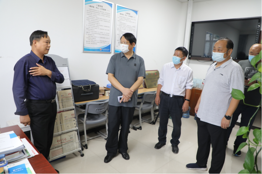 在二级院部,闫俊山对国庆期间坚守岗位的值班人员表示慰问,详细询问了各二级院部学生离校留校人数、留校学生的生活情况,并对各二级院部开展的系列“欢庆国庆”活动表示充分肯定。