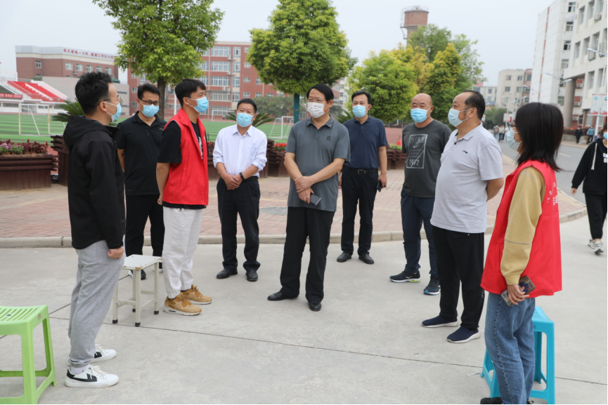 在学校门岗值守点,闫俊山认真察看了学生进出校门查验过程,询问国庆期间学生外出情况。他指出学校门岗检查是保障学校安全稳定的最重要的一环,要求门岗值守人员进一步落实值班值守责任,严把校门关,严格落实各项疫情防控措施,师生进入校园严格执行扫码、测温,查验行程码、核酸检测阴性手续,以过硬的工作作风保护好学校的安全稳定和师生生命安全。