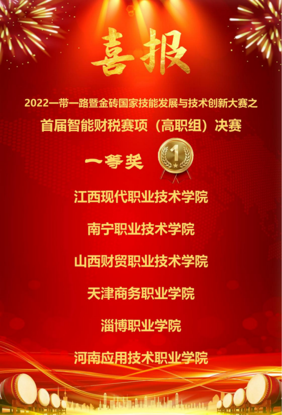 2022年10月15日,“一带一路”暨金砖国家技能发展与技术创新大赛智能财税赛项(高职组)全国总决赛通过“线上+线下”的形式开展,我校经济管理学院2020级学生高海涛、杨芊、牛亚迪、高盼盼作为河南省代表队之一参加总决赛,最终斩获该赛项全国总决赛团体一等奖!
