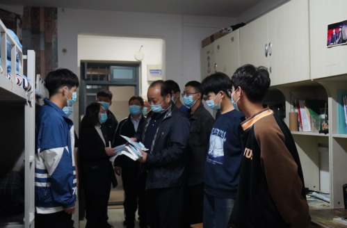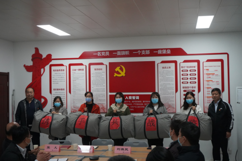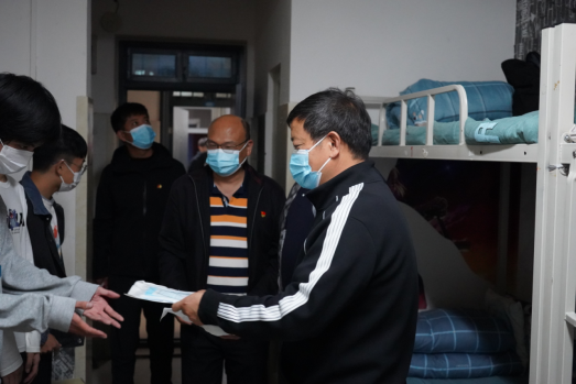 最后,机关第四党总支党员教师为学院教师送上“爱心棉被”,并走进学生宿舍送去“爱心口罩”。