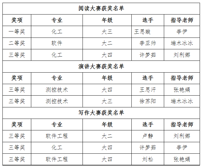 我校李伊、端木冰冰、刘利娜、张艳娟四位指导老师积极备赛,精心研究赛事细则,悉心指导学生。参赛学生刻苦努力,积极备赛,克服疫情期间各种困难,最终取得优异成绩,充分展现了我校学子的英语综合应用能力和语言输出能力。