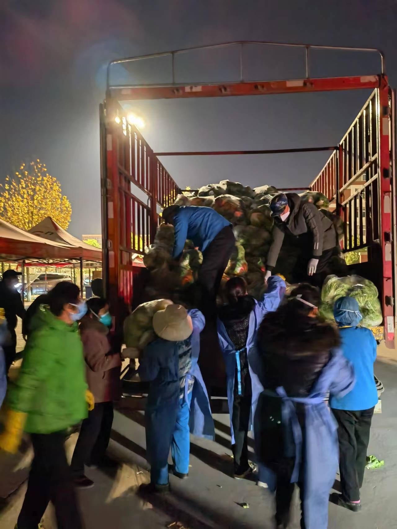 由于蔬菜生产季节性强、抗风险能力弱,受疫情影响,浚县小河镇郎营村部分蔬菜滞销,农民心急如焚,一筹莫展。学校获知这一信息后,积极伸出援手,纾民困,解民忧,组织实施消费帮扶,加强蔬菜产销对接,受到当地农民的热烈欢迎。在浚县乡村振兴局和农业农村局的大力支持下,我校帮扶工作队积极对接,联系采购滞销蔬菜18260斤,于12月2日18时顺利运抵我校郑州校区,后勤处与送货人员及时对接,安排工作人员加班加点完成卸车和存放工作。