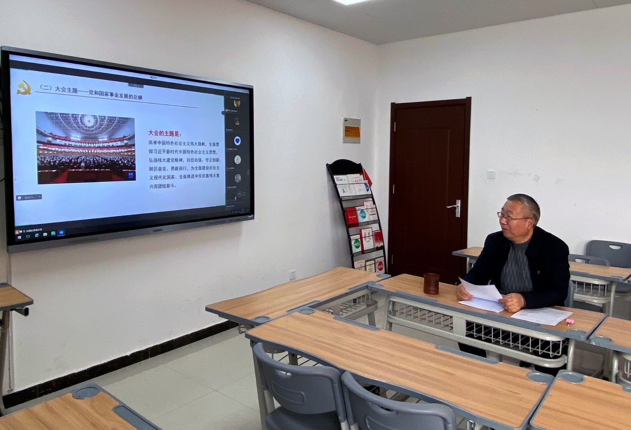 2022年12月9日,校党委委员、党委副书记朱东方以“学习党的二十大报告,在新时代建功立业”为主题,在A515党员活动室为护理学院学生线上讲授党的二十大报告专题党课。
